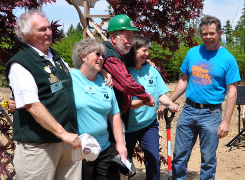 4 June 2011 - Lion Dr. Don Butt, Nancy Nevison, Lion Bob Rooks, Brenda Fowler and MLA Doug Routley celebrate turning the sod for the new Gabriola Community Health Centre.