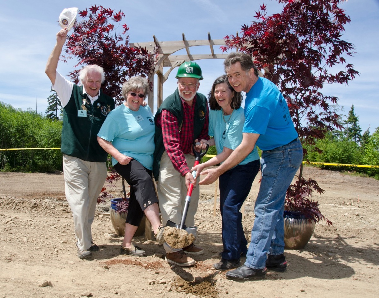Left to Right: Lion Representative to the Health Care Society and Foundation Lion Dr. Don Butt, Auxiliary President Nancy Nevison, donator of the land and major supporter Lion Dr. Bob Rooks, Society President Brenda Fowler, and MLA Doug Routley. Photo: Derek Kilbourn