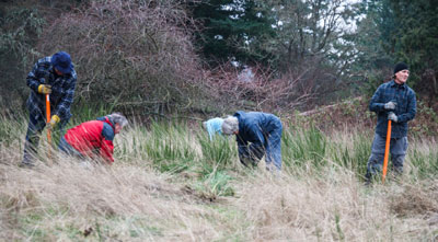 Lions helping GaLTT with their broom pulling project in Drumbeg Park Sunday Feb 3, 2013. It's amazing how rapidly this invasive weed takes over, but equally amazing is the natural beauty of the park when it's gone. (Photos: DB)